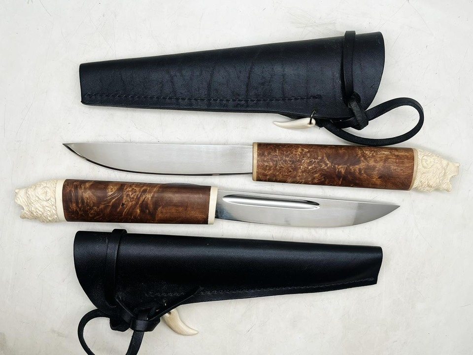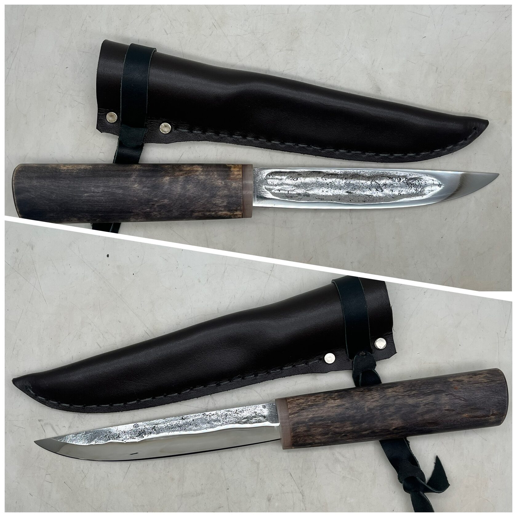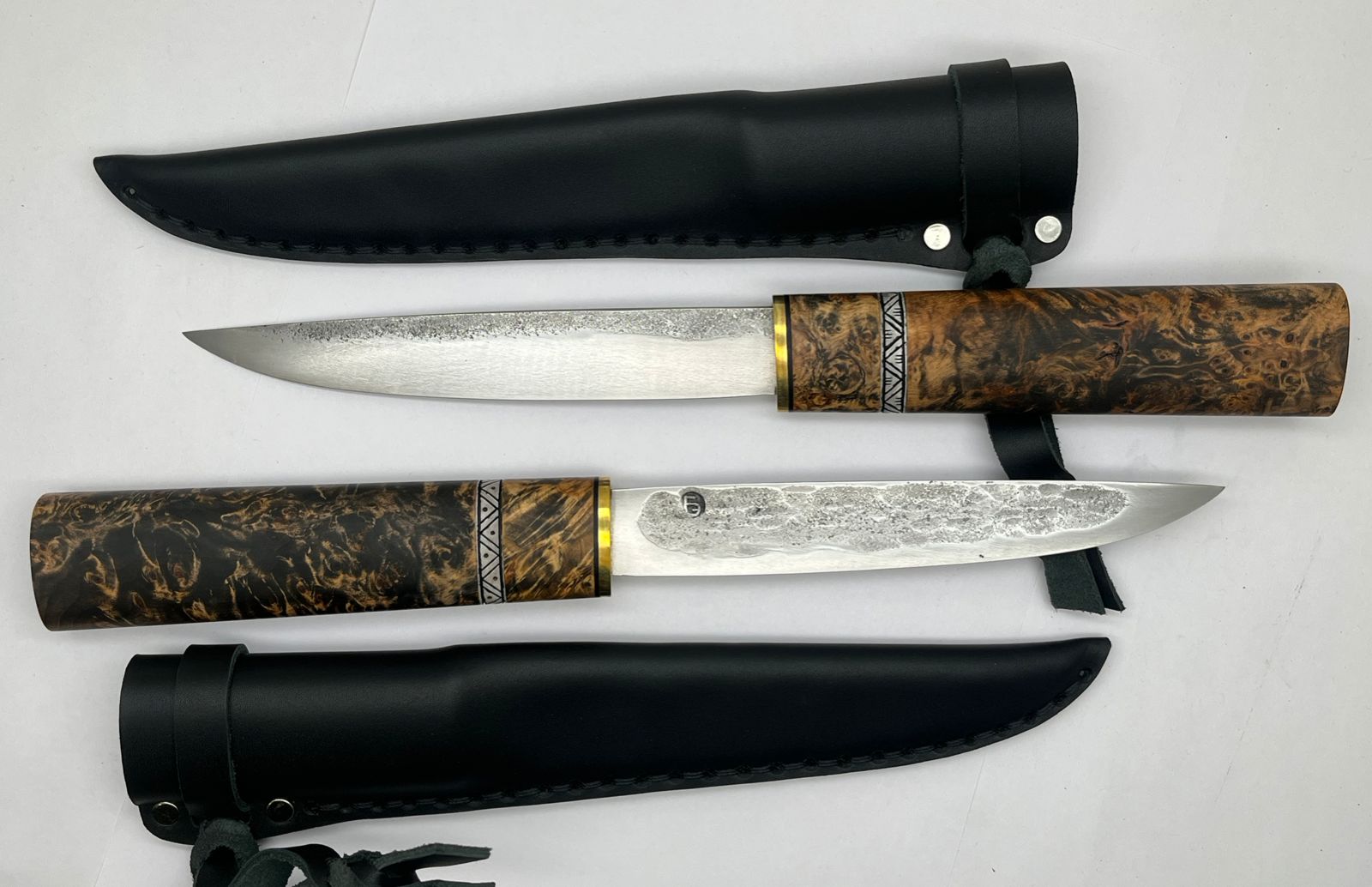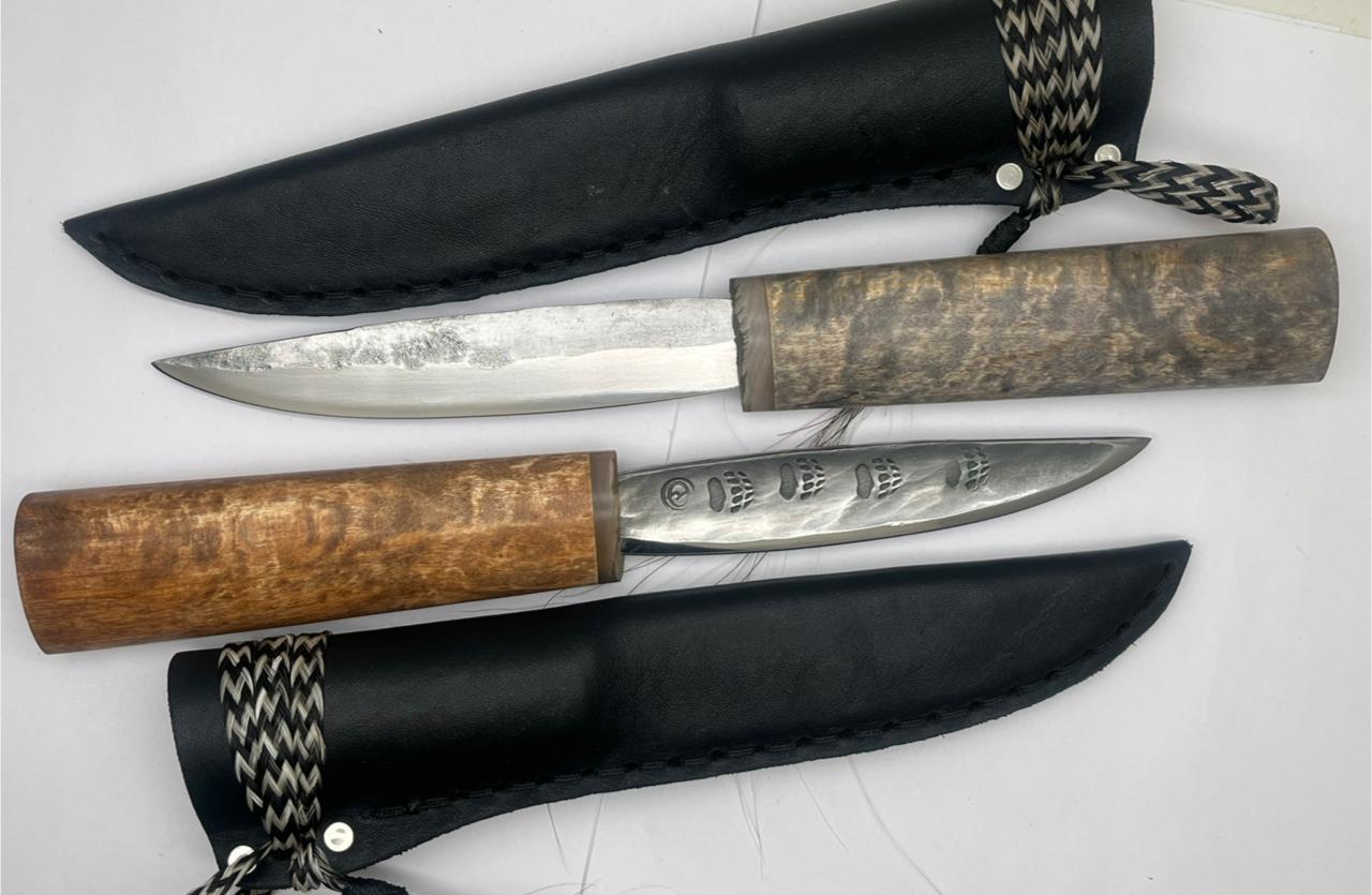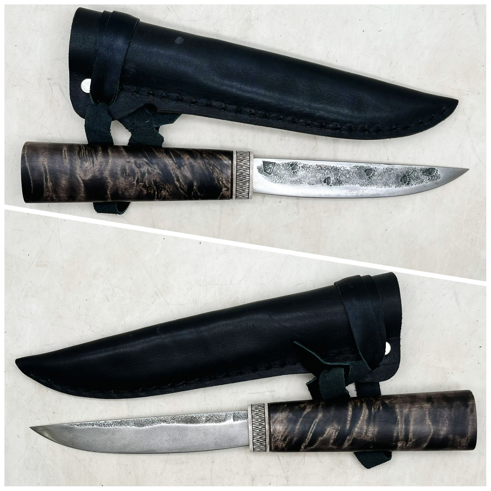 | Яку́тский нож (якут. саха быhаҕа) Уникальные охотничьи якутские ножи ручной работы легко узнаваемы по внешнему виду. Характерная геометрия заостренного клинка с прямым обухом и асимметрической заточкой, деревянная ручка внушительной длины, оригинальный кожаный чехол, декоративная отделка – все это выделяет кованые якутские ножи для охоты. Якутский нож отлично справится с различными задачами охотника от разделки туш до работ с древесиной. Не пропустите возможность купить настоящие якутские ножи от именитых мастеров Якутии. |