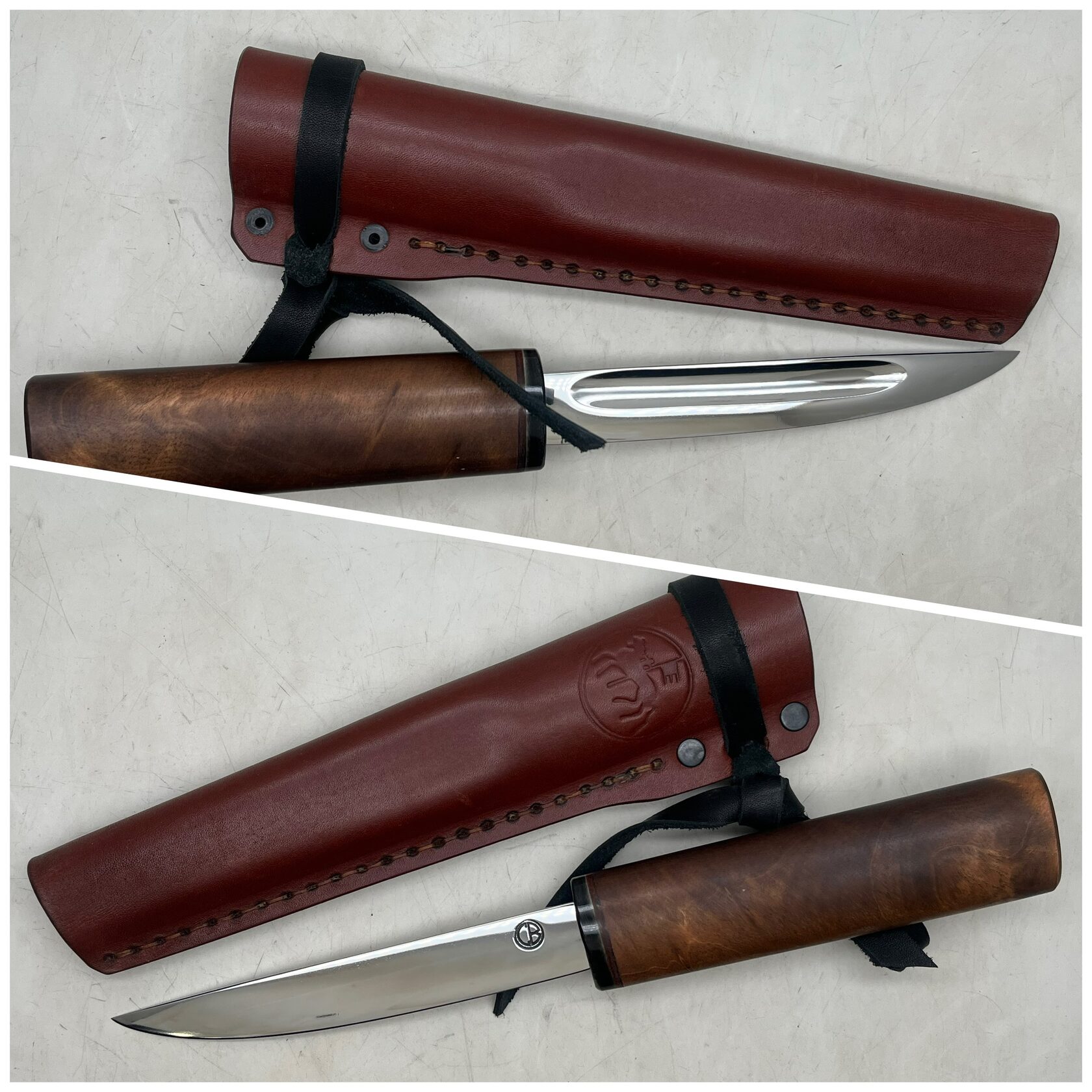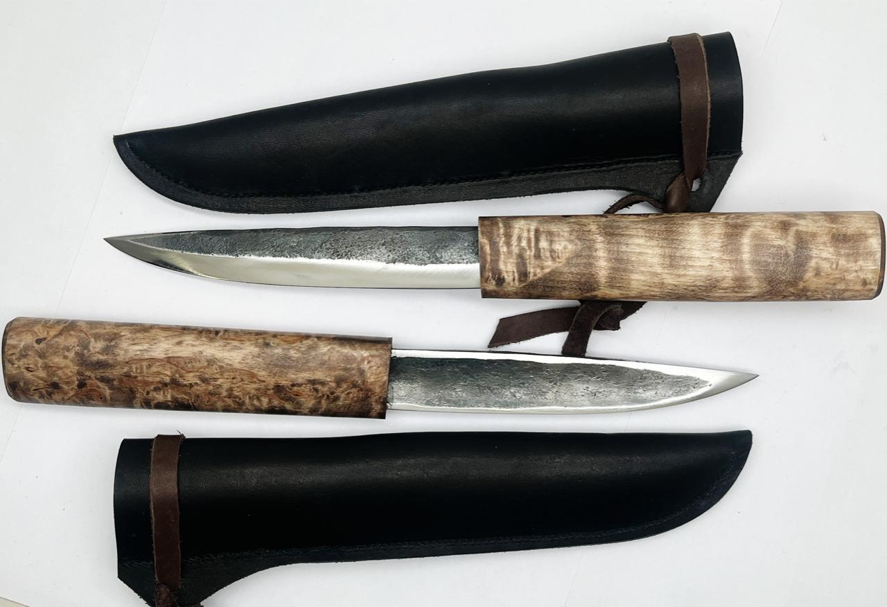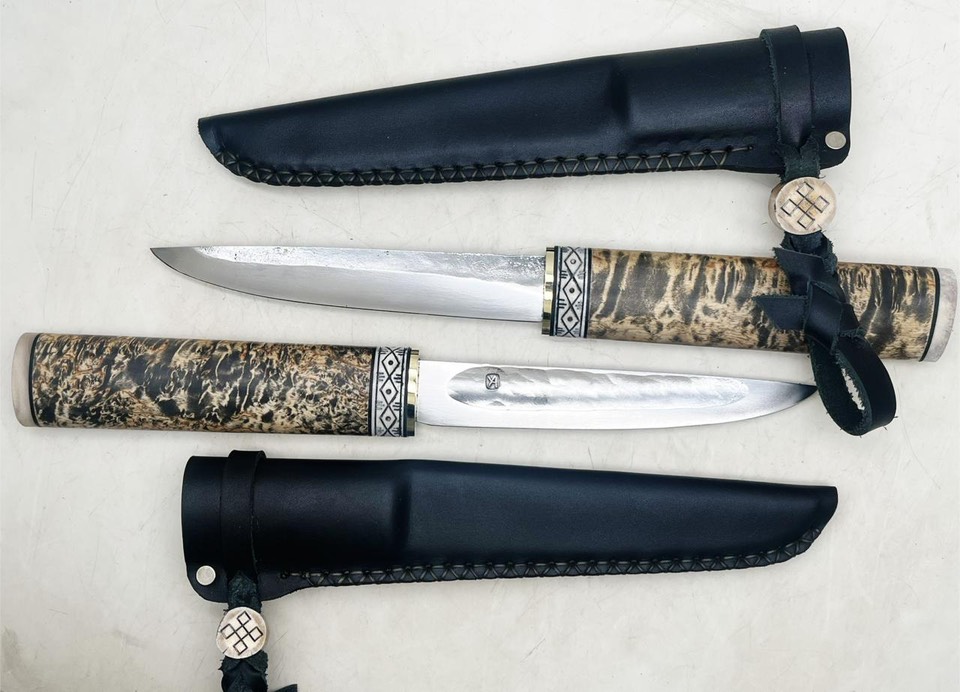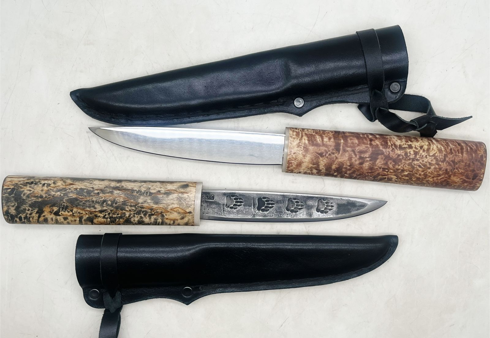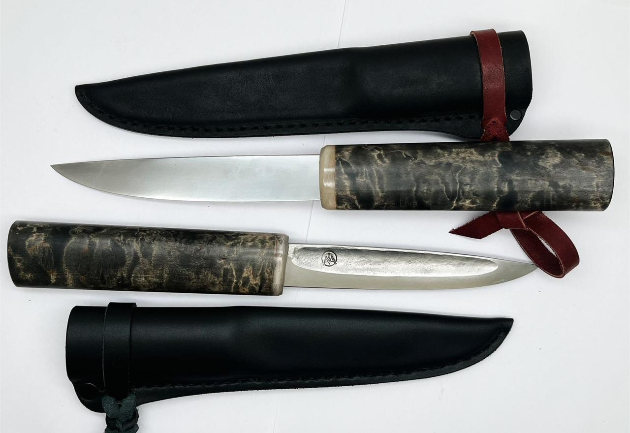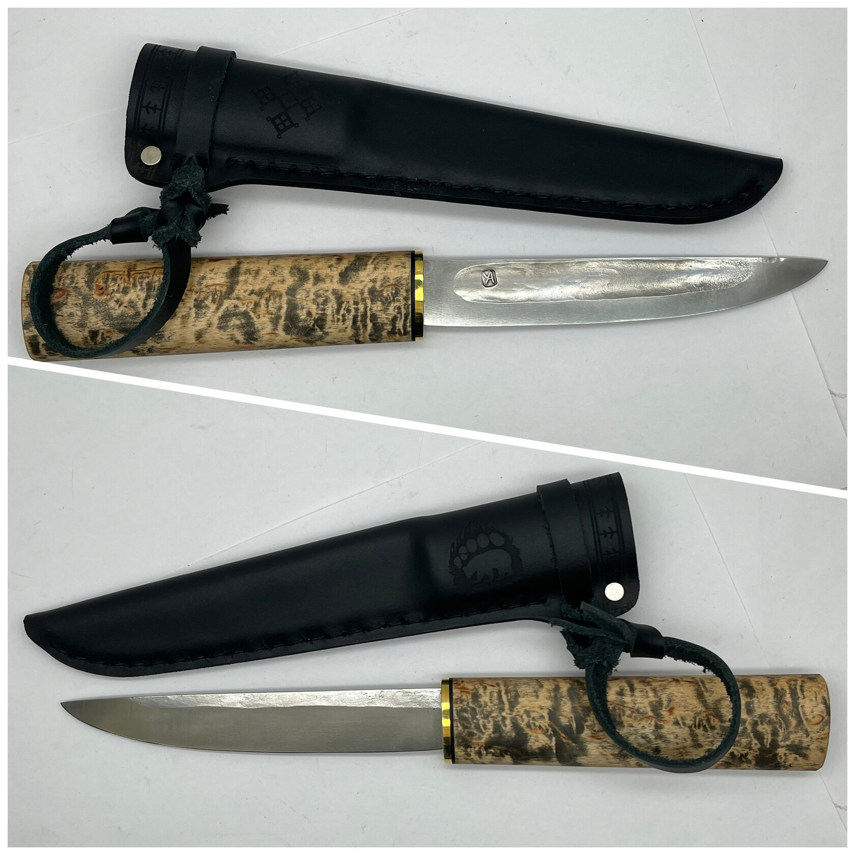 | Яку́тский нож (якут. саха быhаҕа) Уникальные охотничьи якутские ножи ручной работы легко узнаваемы по внешнему виду. Характерная геометрия заостренного клинка с прямым обухом и асимметрической заточкой, деревянная ручка внушительной длины, оригинальный кожаный чехол, декоративная отделка – все это выделяет кованые якутские ножи для охоты. Якутский нож отлично справится с различными задачами охотника от разделки туш до работ с древесиной. Не пропустите возможность купить настоящие якутские ножи от именитых мастеров Якутии. |