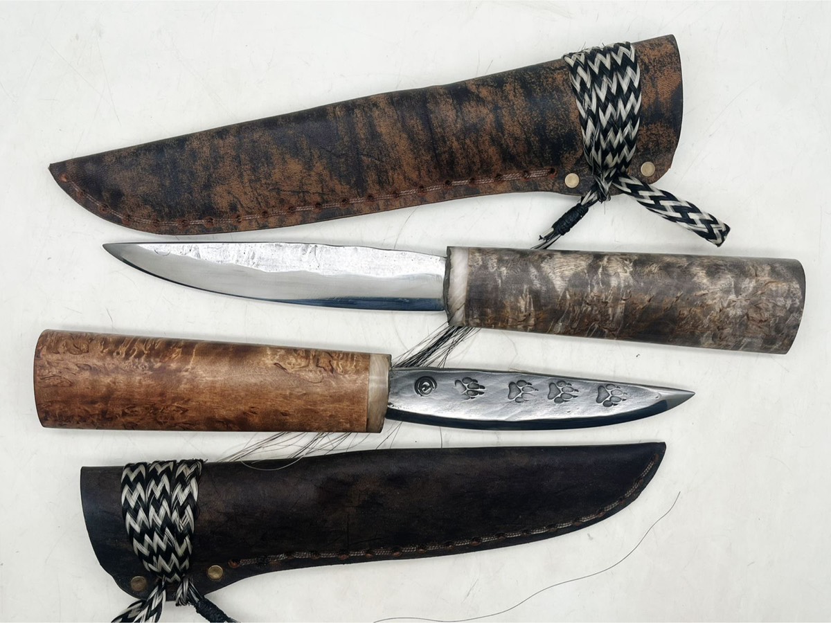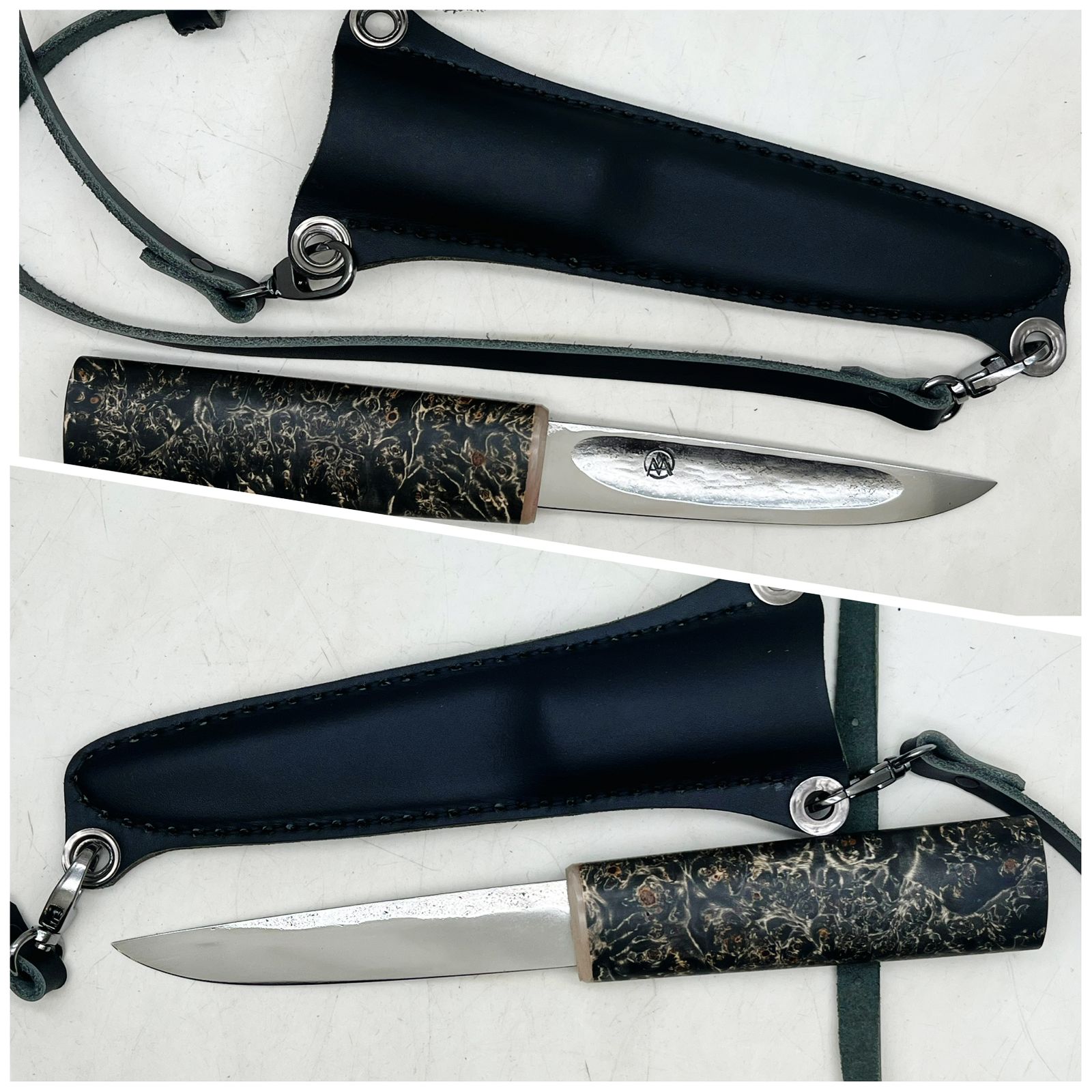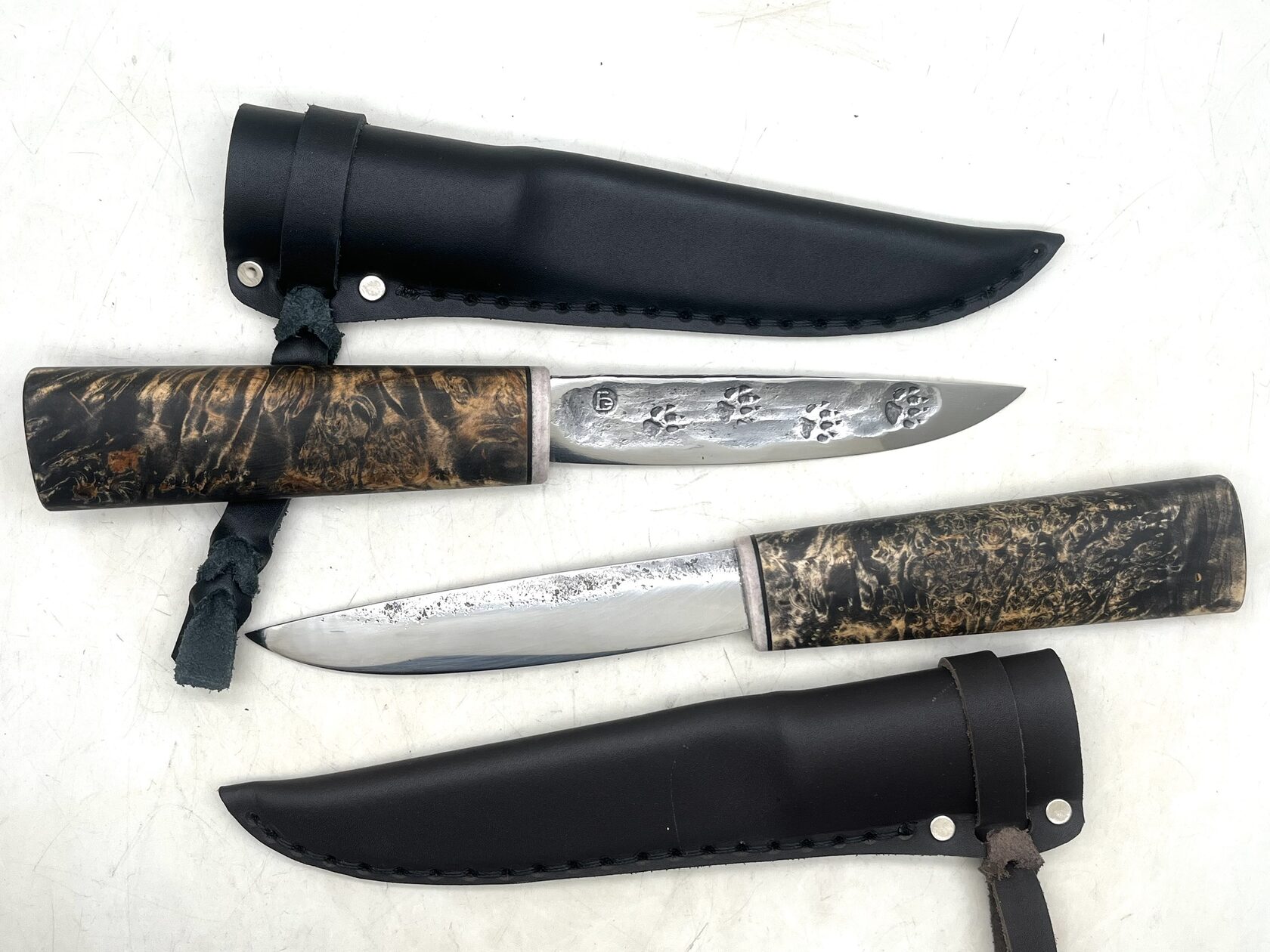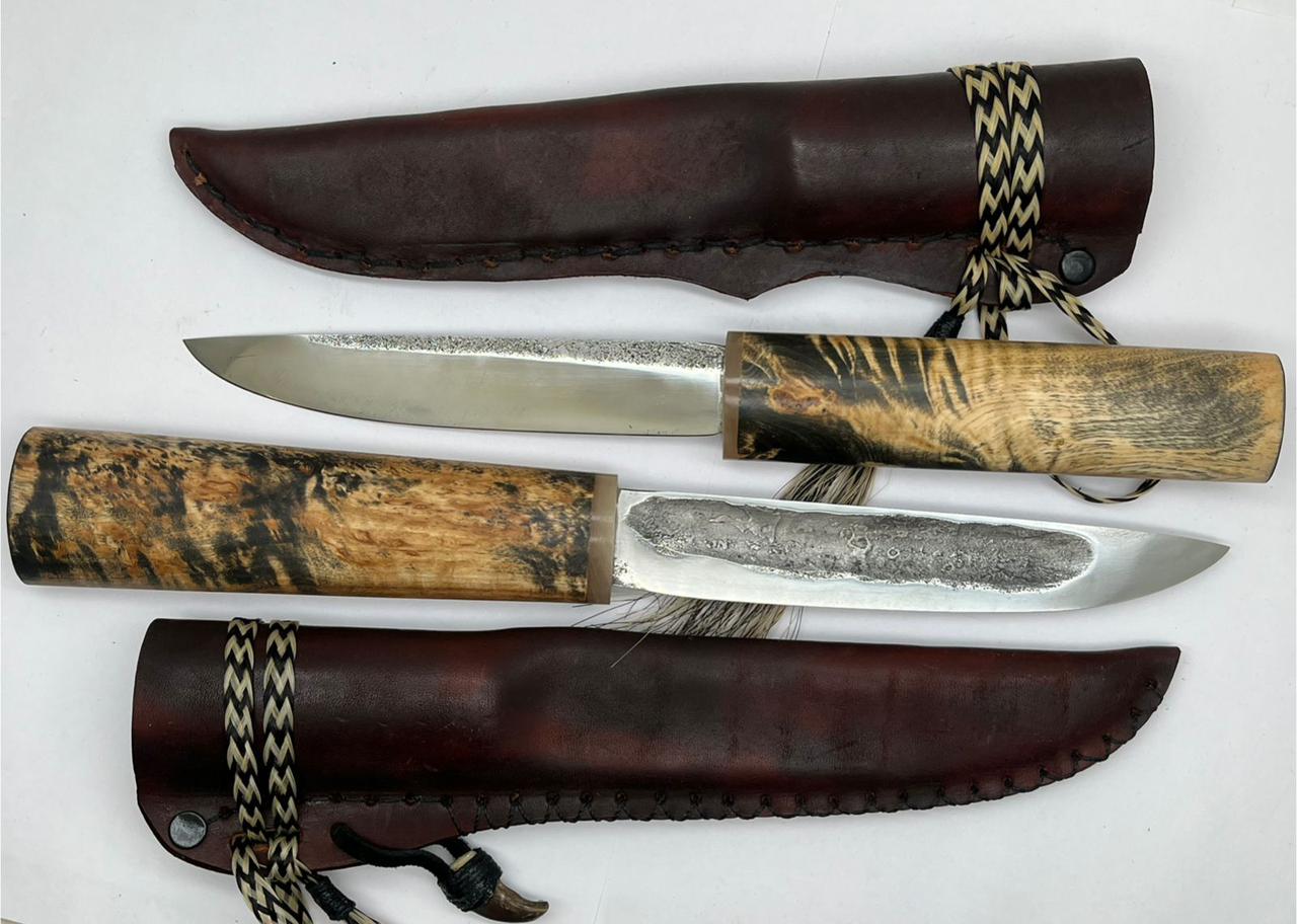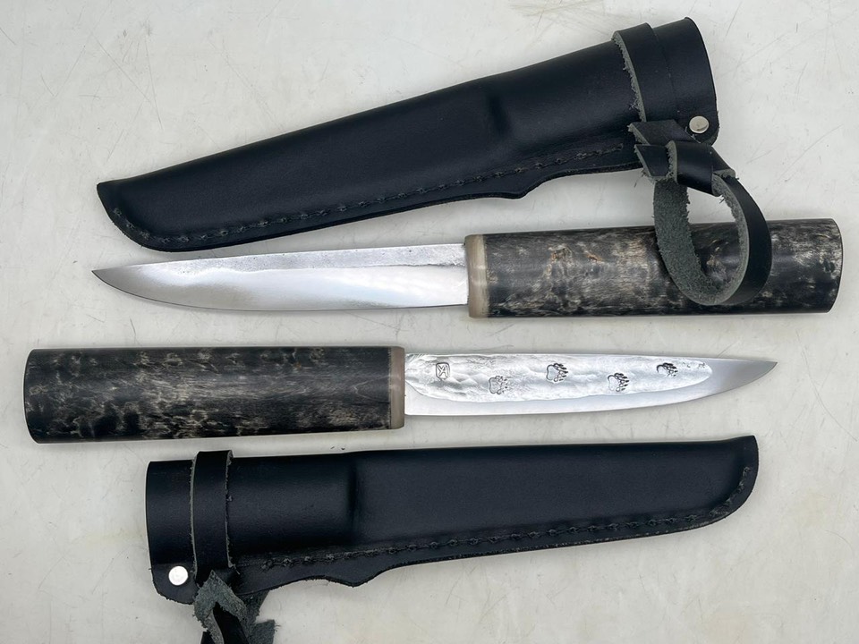 | Яку́тский нож (якут. саха быhаҕа) Уникальные охотничьи якутские ножи ручной работы легко узнаваемы по внешнему виду. Характерная геометрия заостренного клинка с прямым обухом и асимметрической заточкой, деревянная ручка внушительной длины, оригинальный кожаный чехол, декоративная отделка – все это выделяет кованые якутские ножи для охоты. Якутский нож отлично справится с различными задачами охотника от разделки туш до работ с древесиной. Не пропустите возможность купить настоящие якутские ножи от именитых мастеров Якутии. |