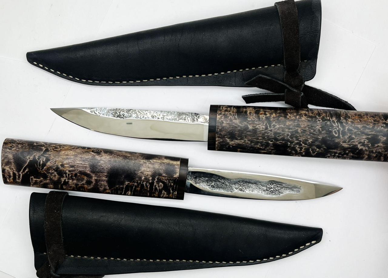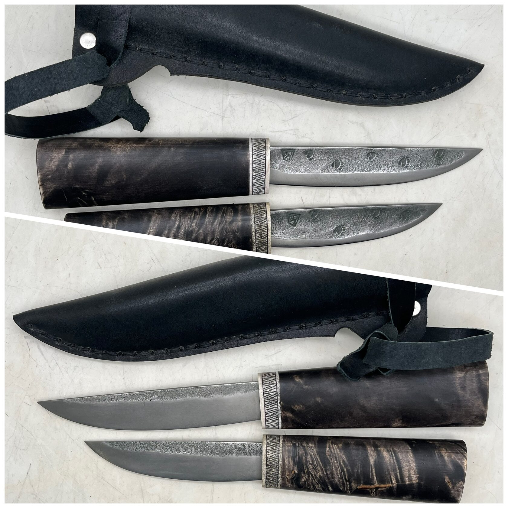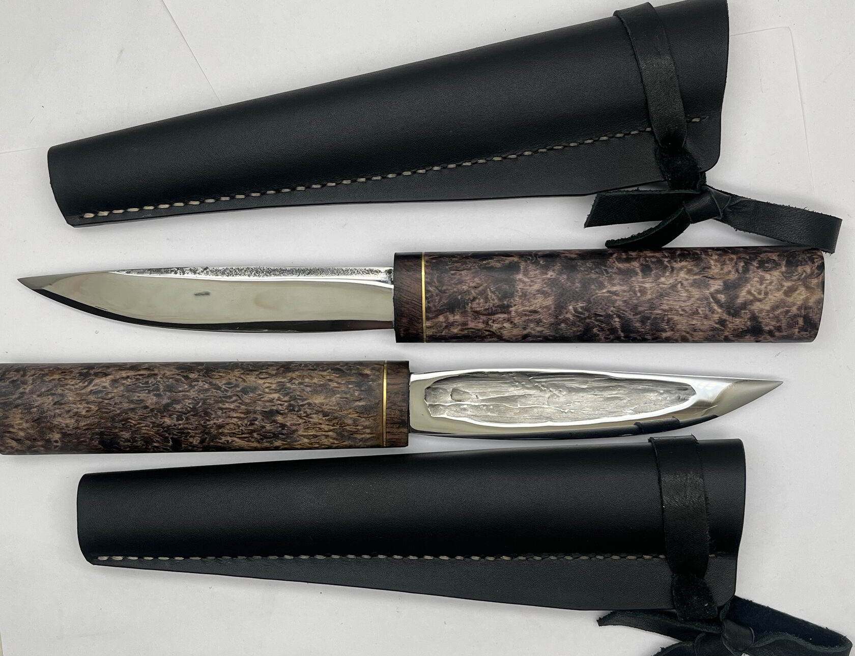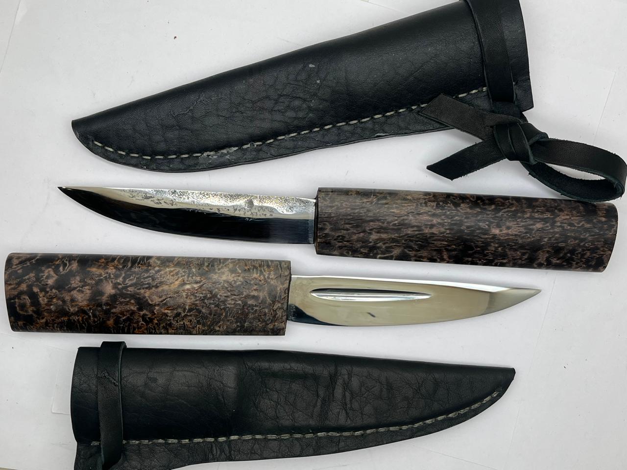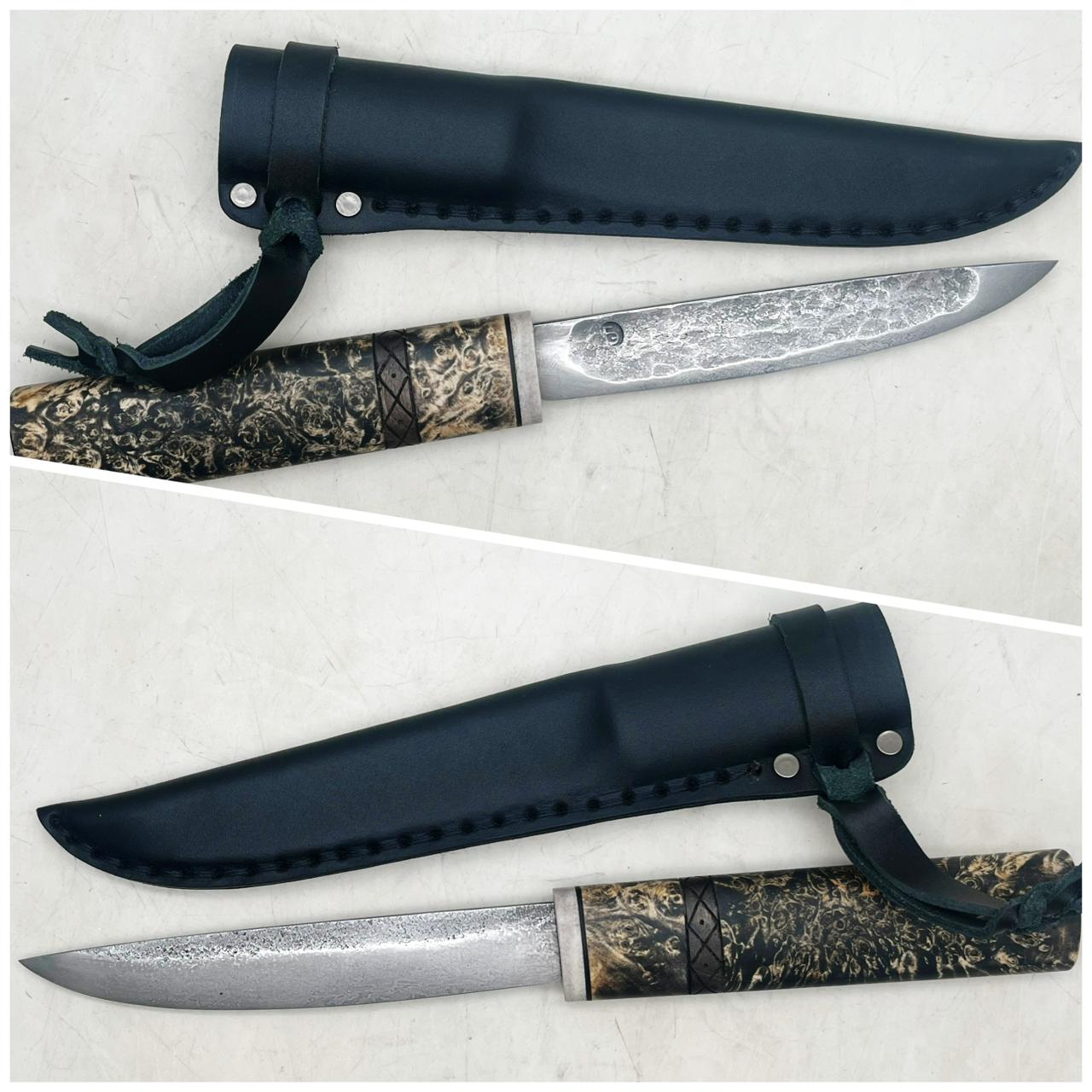| Яку́тский нож (якут. саха быhаҕа) Уникальные охотничьи якутские ножи ручной работы легко узнаваемы по внешнему виду. Характерная геометрия заостренного клинка с прямым обухом и асимметрической заточкой, деревянная ручка внушительной длины, оригинальный кожаный чехол, декоративная отделка – все это выделяет кованые якутские ножи для охоты. Якутский нож отлично справится с различными задачами охотника от разделки туш до работ с древесиной. Не пропустите возможность купить настоящие якутские ножи от именитых мастеров Якутии. |