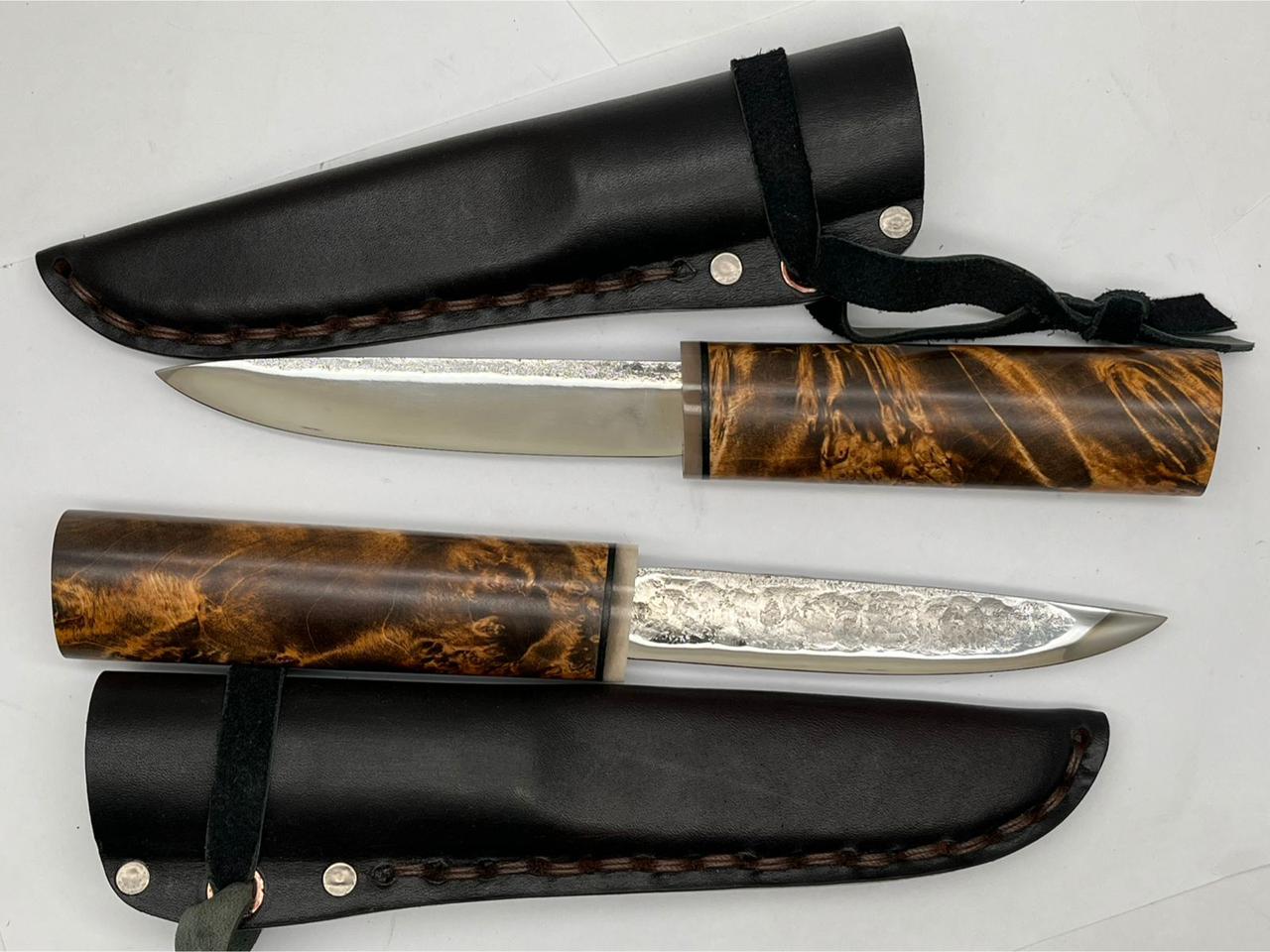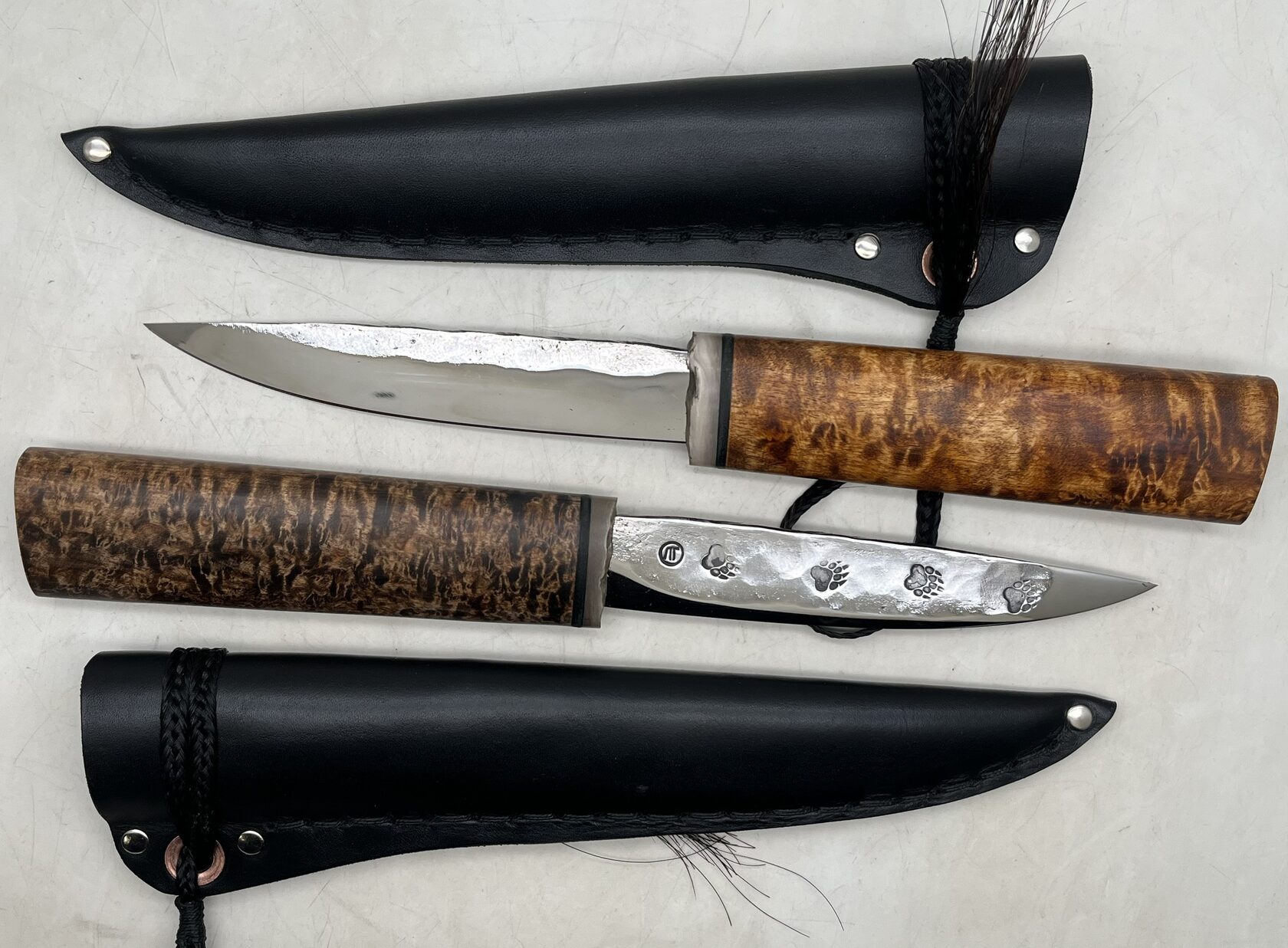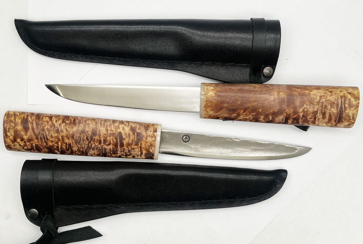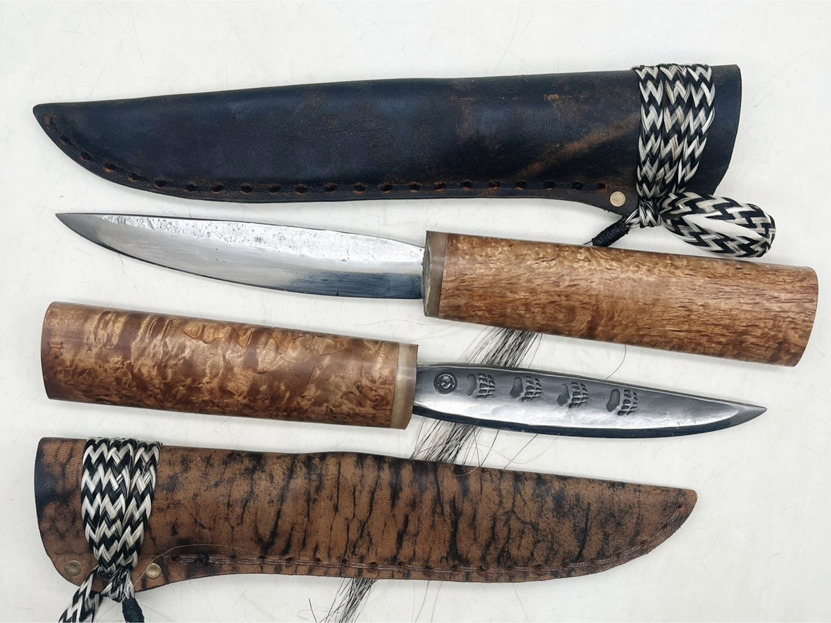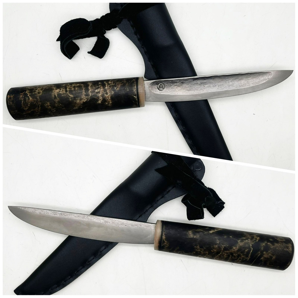 | Яку́тский нож (якут. саха быhаҕа) Уникальные охотничьи якутские ножи ручной работы легко узнаваемы по внешнему виду. Характерная геометрия заостренного клинка с прямым обухом и асимметрической заточкой, деревянная ручка внушительной длины, оригинальный кожаный чехол, декоративная отделка – все это выделяет кованые якутские ножи для охоты. Якутский нож отлично справится с различными задачами охотника от разделки туш до работ с древесиной. Не пропустите возможность купить настоящие якутские ножи от именитых мастеров Якутии. |