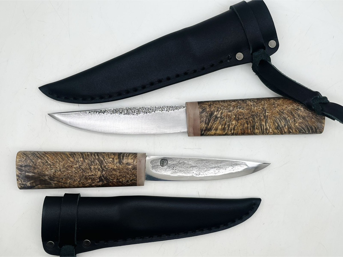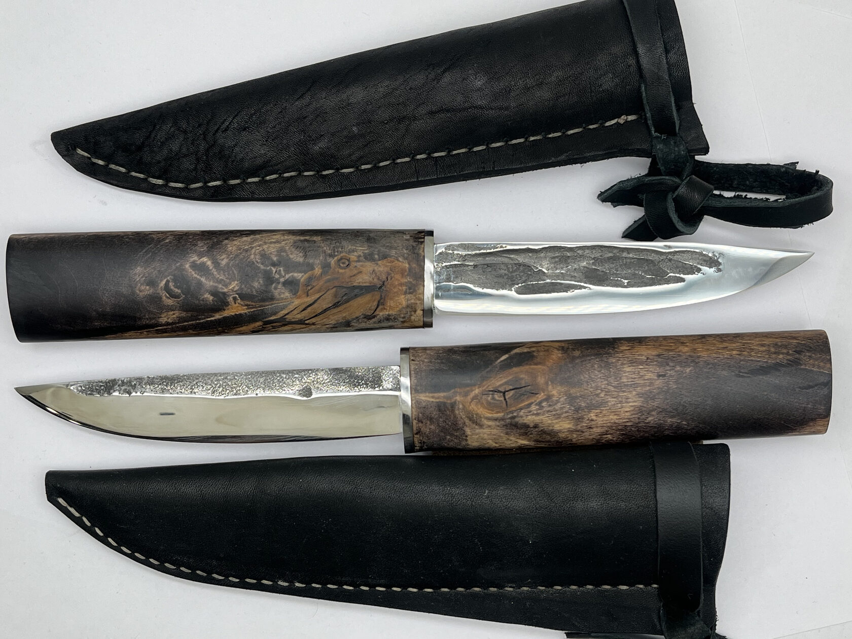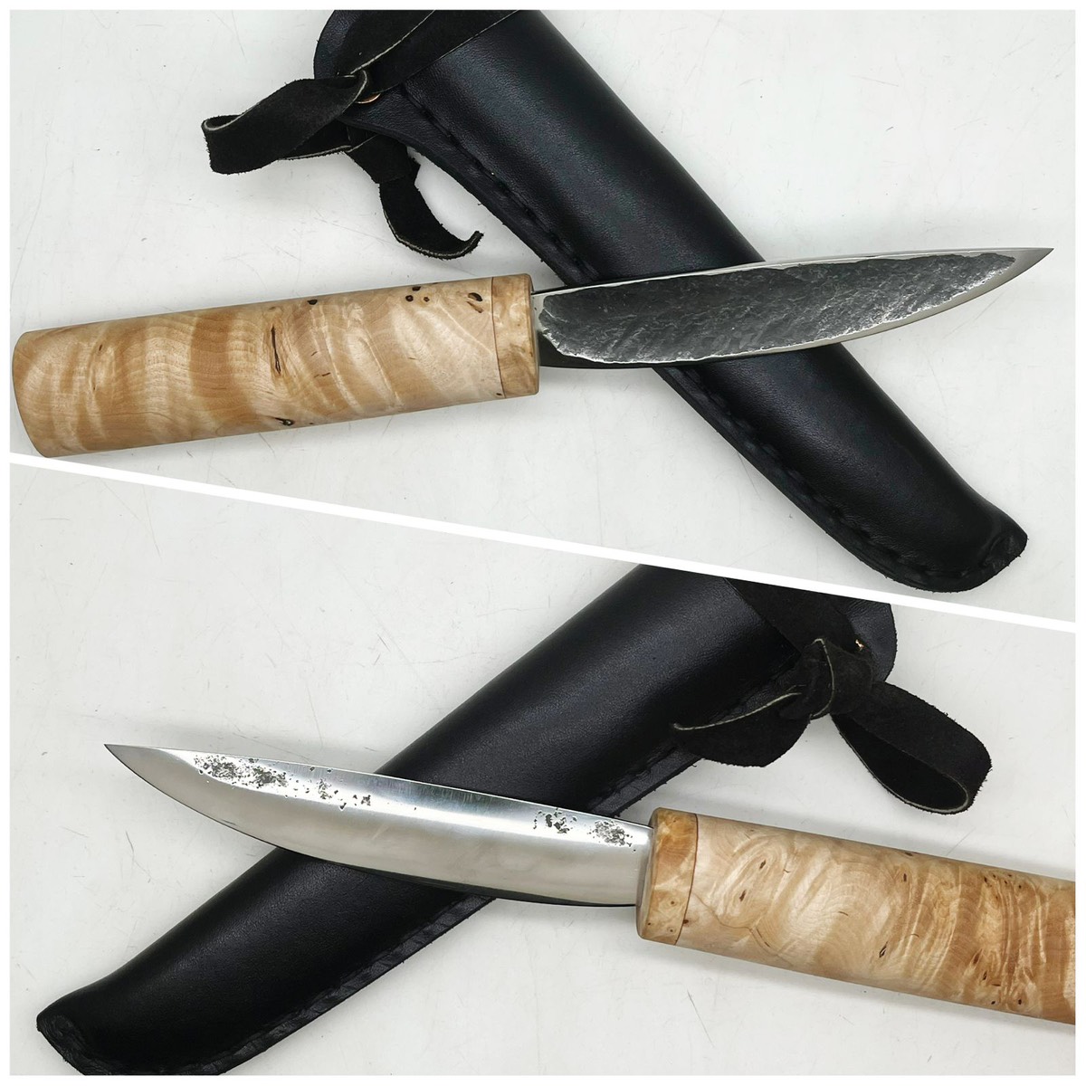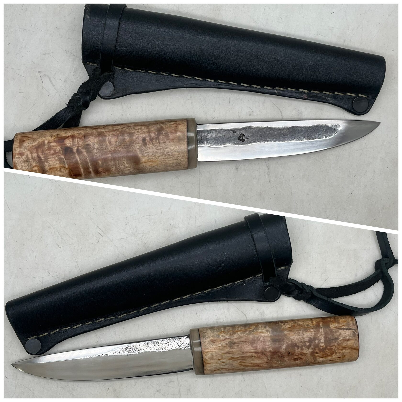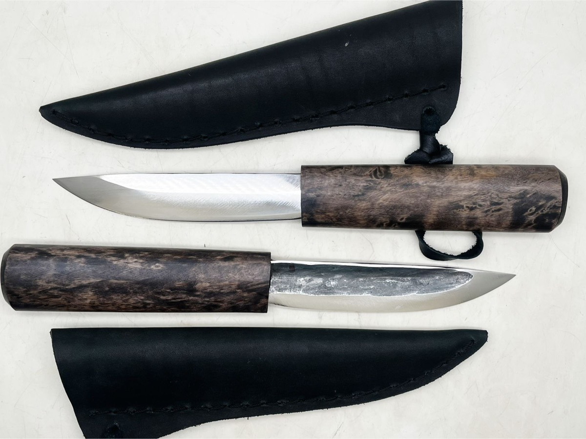 | Яку́тский нож (якут. саха быhаҕа) Уникальные охотничьи якутские ножи ручной работы легко узнаваемы по внешнему виду. Характерная геометрия заостренного клинка с прямым обухом и асимметрической заточкой, деревянная ручка внушительной длины, оригинальный кожаный чехол, декоративная отделка – все это выделяет кованые якутские ножи для охоты. Якутский нож отлично справится с различными задачами охотника от разделки туш до работ с древесиной. Не пропустите возможность купить настоящие якутские ножи от именитых мастеров Якутии. |