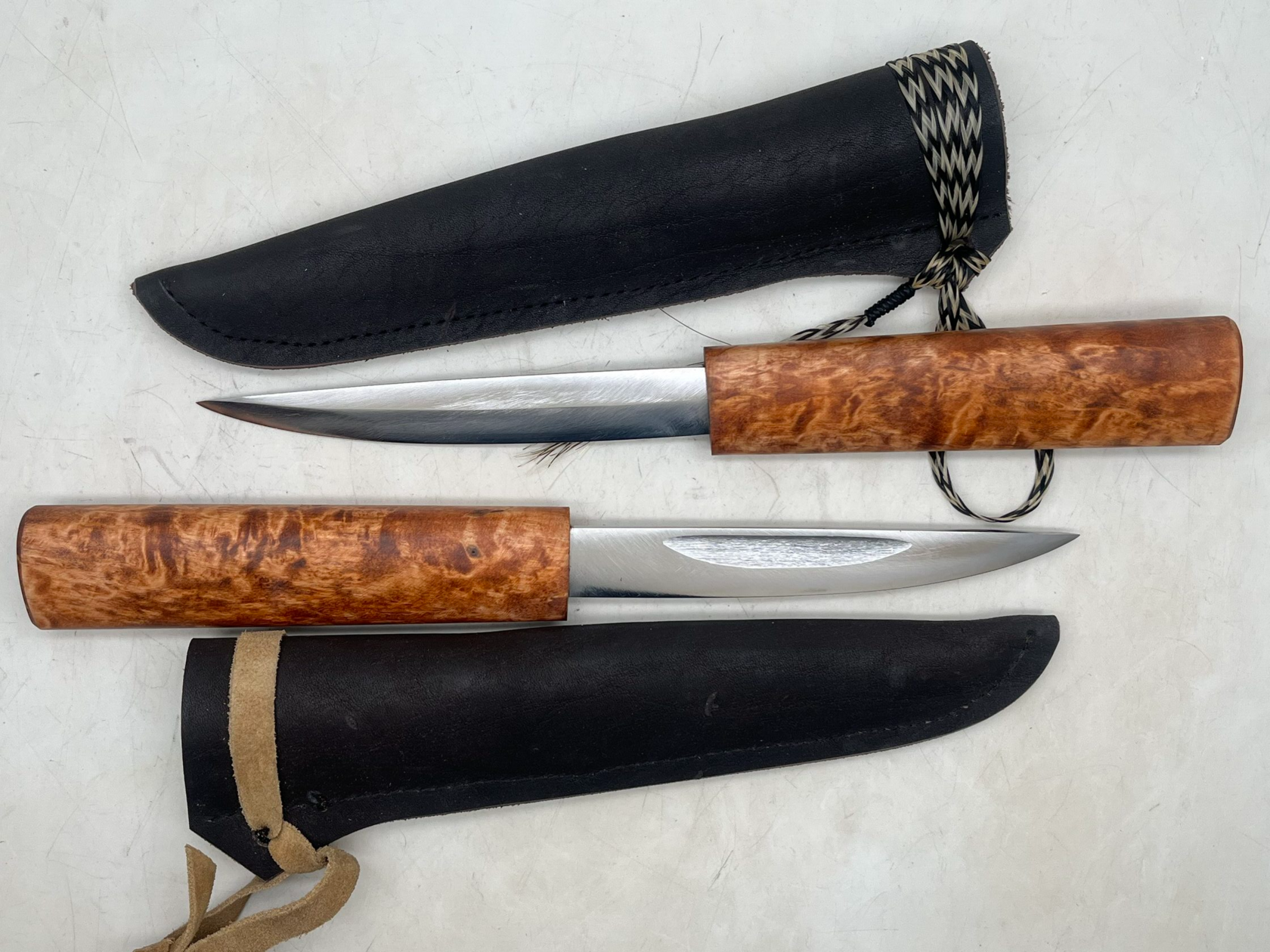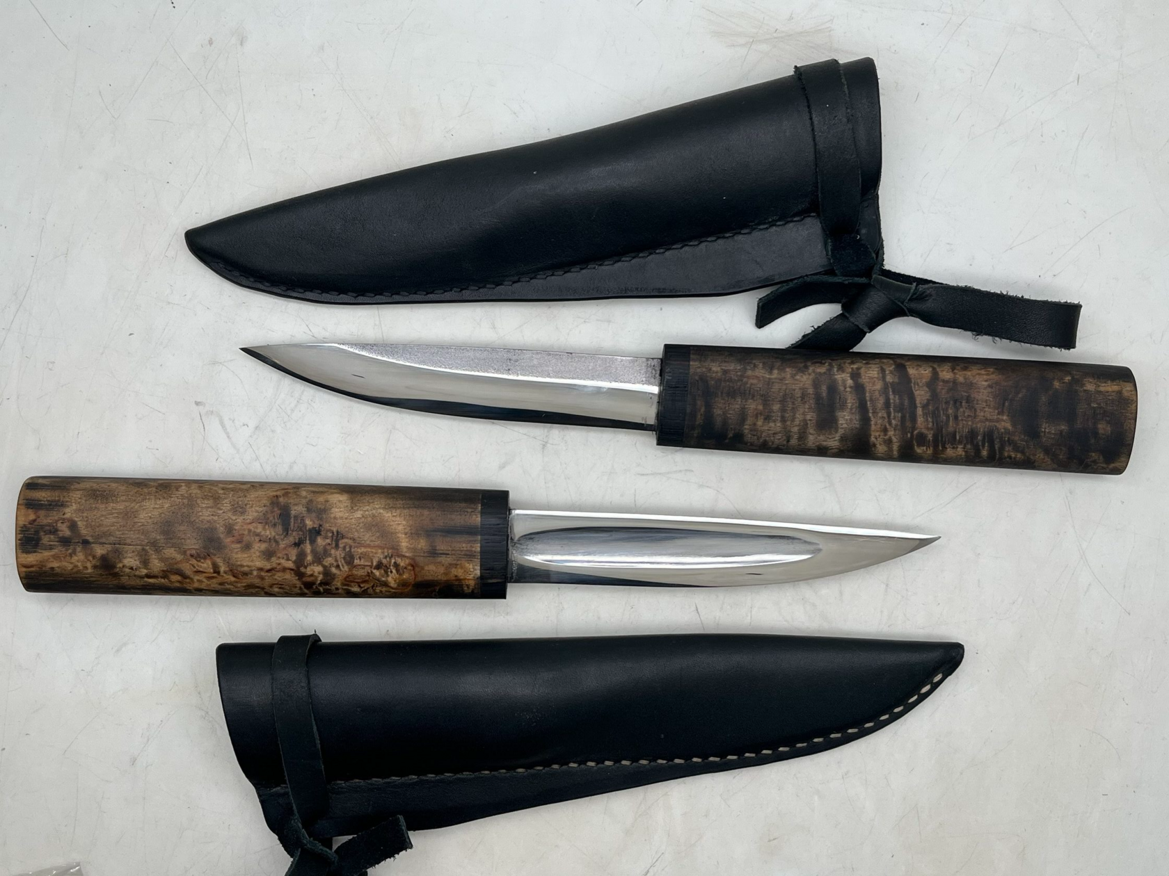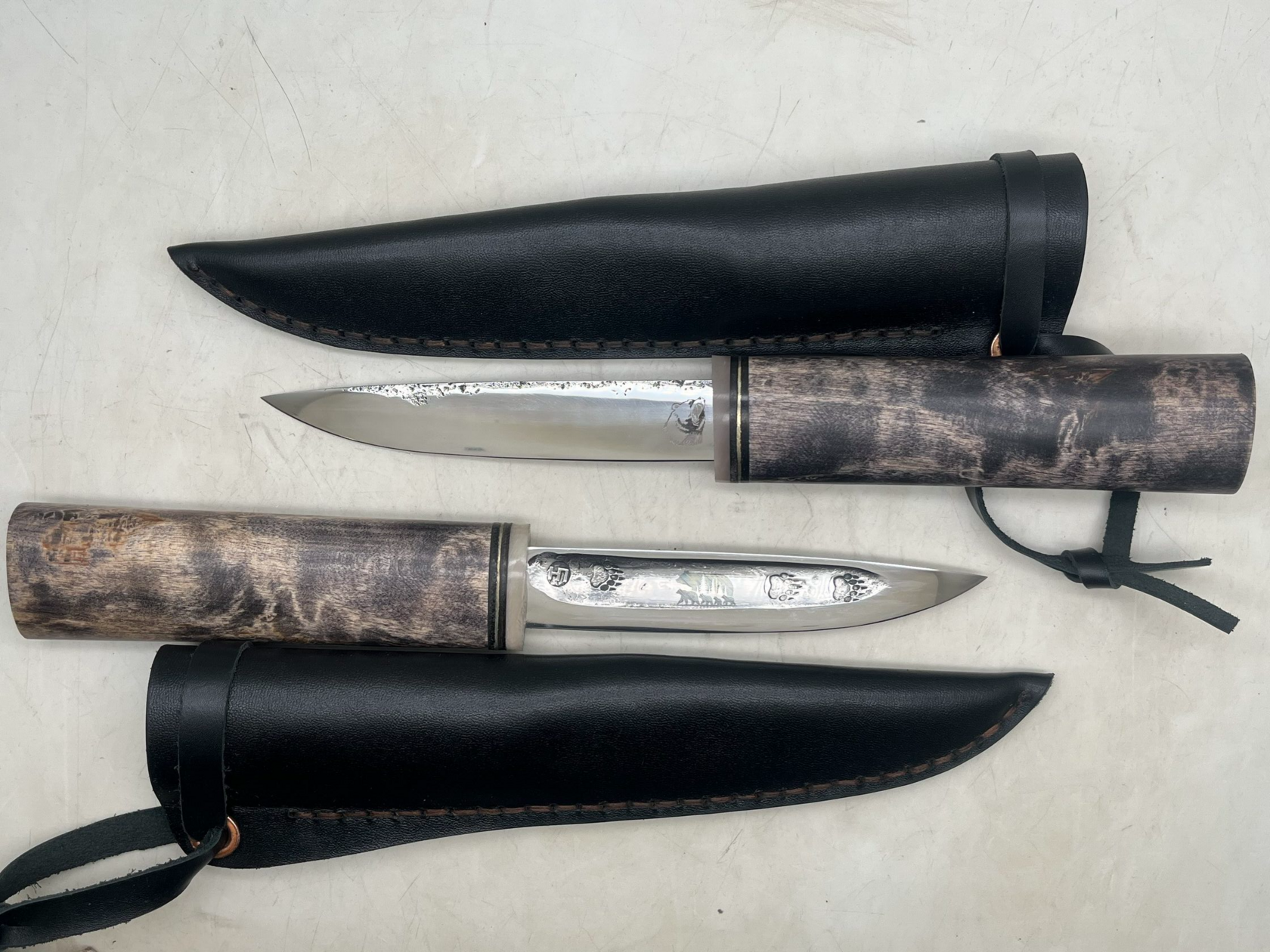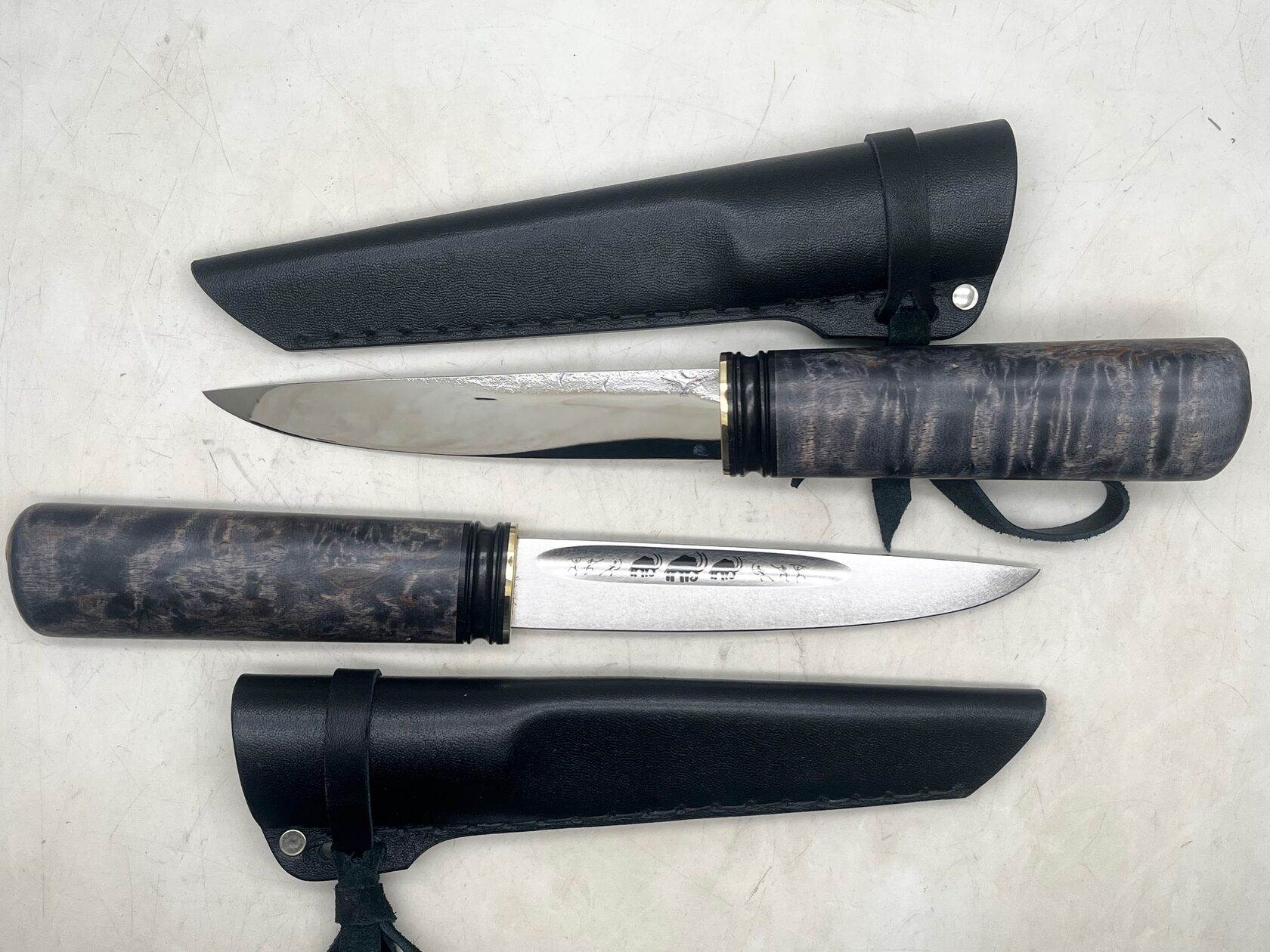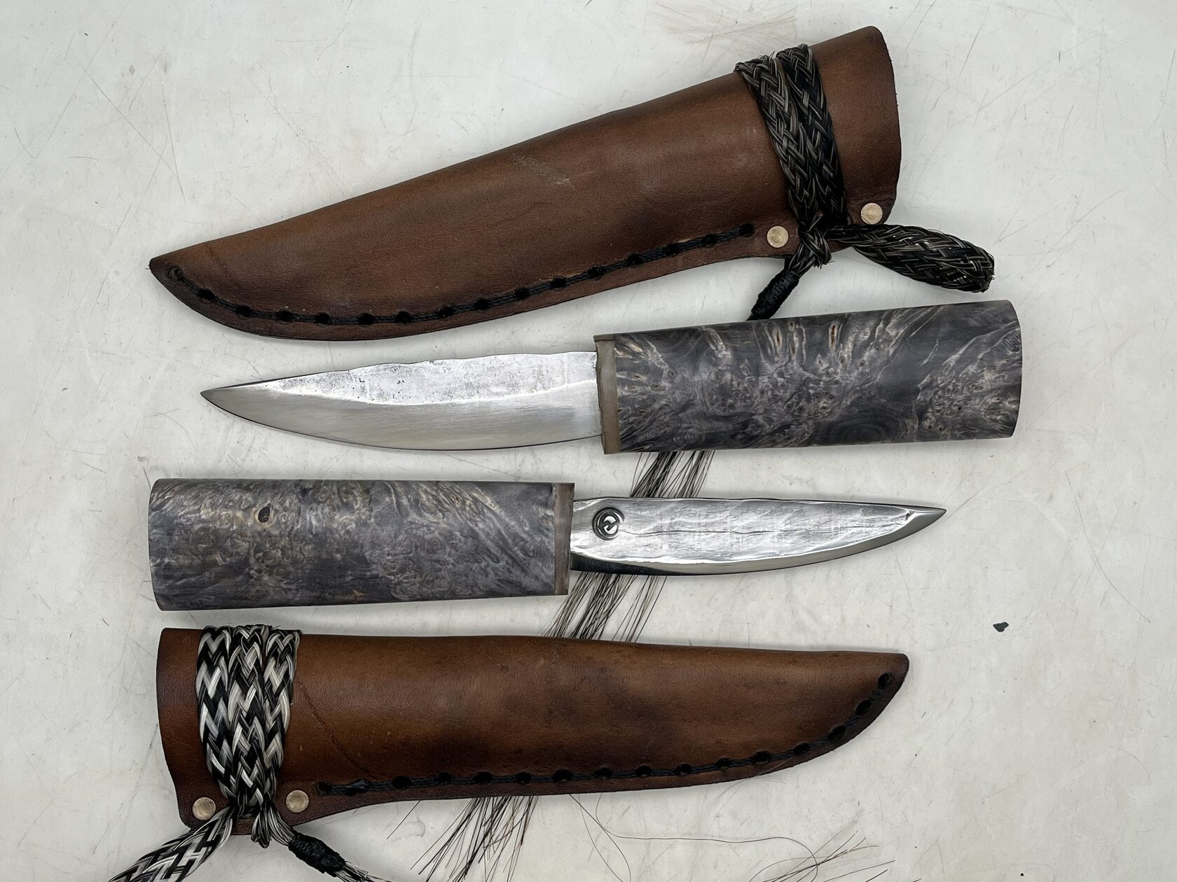 | Яку́тский нож (якут. саха быhаҕа) Уникальные охотничьи якутские ножи ручной работы легко узнаваемы по внешнему виду. Характерная геометрия заостренного клинка с прямым обухом и асимметрической заточкой, деревянная ручка внушительной длины, оригинальный кожаный чехол, декоративная отделка – все это выделяет кованые якутские ножи для охоты. Якутский нож отлично справится с различными задачами охотника от разделки туш до работ с древесиной. Не пропустите возможность купить настоящие якутские ножи от именитых мастеров Якутии. |